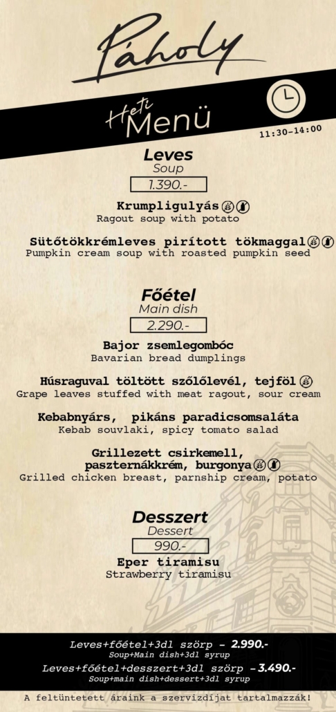 Minden hétköznap (hétfőtől péntekig): 11:30 – 14:00